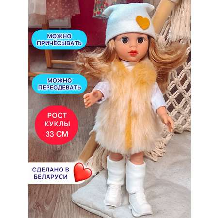 Классическая кукла в модной одежде ростом 33 см. Волосы прошиты по всей голове, куклу с длинными волосами можно причёсывать. У куклы качественная модная съёмная одежда. Производство Беларусь. Кукла модель изготовлена из полимерных материалов.