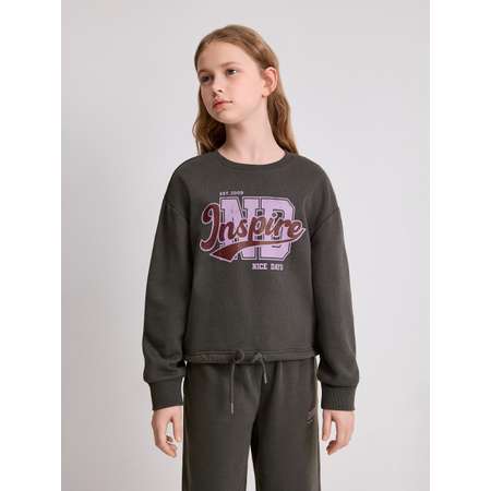 Свитшот для девочки-подростка выполнен из хлопкового футера с петлями на изнаночной стороне (без начеса), что делает его подходящим для занятий спортом или составления многослойных сложных образов. Свитшот посадки comfort, предполагающей свободный крой, приспущенную линия плеча, а также увеличенные объем и длину рукава. Удобная округлая горловина и манжеты рукавов выполнены из эластичного рибового полотна для лучшего прилегания к телу и сохранения тепла. По низу изделия расположена кулиска со шнурком для регулировки посадки. Свитшот украшен принтом с надписями "INSPIRE | NICE DAYS" [англ. - "Вдохновение | Хорошие дни"]. Принт на водной основе сохраняет яркость цвета, а значит, будет долгое время радовать своими красками. Свитшот без начеса для девочек можно дополнить комплектными брюками (20240460020), чтобы собрать спортивный костюм для девочек. Модель представлена в двух цветах: графитовом и бежевом.
