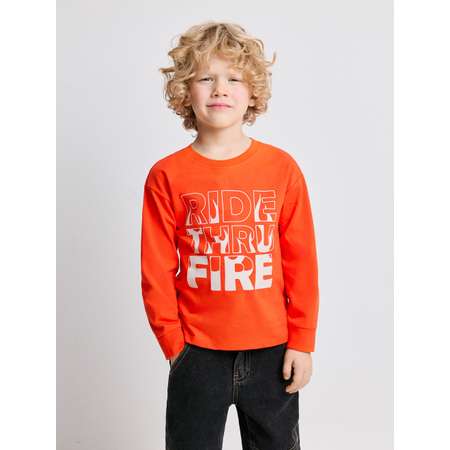 Яркий свитшот для мальчика призван разнообразить детский повседневный гардероб. Свитшот выполнен из хлопкового футера с петлями на изнанке (без начеса), благодаря чему он подходит для ношения в течение всего года. Модель COMFORT fit отличается свободным кроем для более комфортного ношения. В свитшоте приспущена линия плеча, а также увеличен объем рукава. Такой крой позволяет составлять многослойные образы и сохранять легкость движений. Эластичные рибовые манжеты из риба по низу рукавов обеспечивают плотное прилегание к телу и сохранение объемной формы изделия. Спереди модель украшена вдохновляющим принтом с надписью "RIDE THRU FIRE" [англ. - "Пройти сквозь пламя"]. Оригинальный и стильный, свитшот составит модный повседневный образ с любимыми джинсами и кедами.
