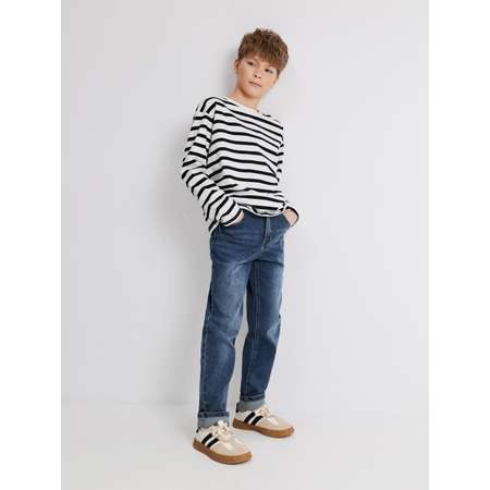 Джинсы для мальчиков-подростков модель Regular fit — это базовый элемент гардероба для создания повседневных образов. Универсальная модель прямого кроя со средней посадкой и полной длиной выполнена из эластичного хлопкового денима. Материал обеспечивает комфортную посадку и легкость движений, которая особенно важна для активных детей. Застежка-молния и пуговица обеспечивают легкое одевание. Пояс с внутренней эластичной лентой для регулировки объема позволяют подогнать изделие под индивидуальные параметры ребенка. Модель с пятью карманами практична в повседневной жизни. Стильные синие джинсы для мальчика-подростка составят модный повседневный лук с полосатым лонгсливом и кедами.