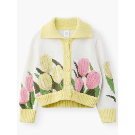 - Лаконичный дизайн – жаккардовая вязка с цветочным принтом придает кардигану для девочки нарядный и уникальный вид.