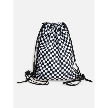 Сумка для обуви в клетку. Модель с лямками из шнура со светоотражающей нитью. Основное отделение затягивается шнуром. Высота 43 см, ширина 37 см.