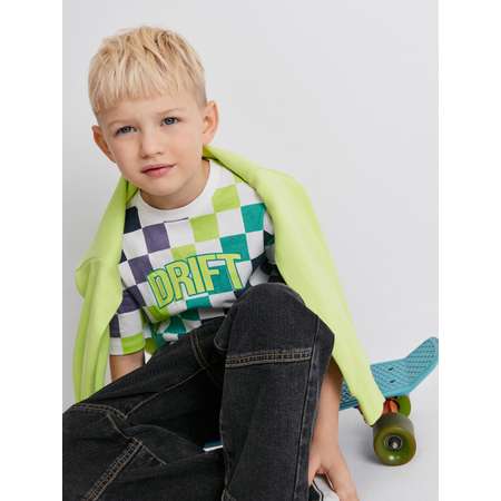 Детская футболка с принтом на тему автоспорта имеет все шансы стать любимой вещью в гардеробе мальчика. Модель выполнена из мягкого и приятного на ощупь трикотажного полотна, которое подходит для длительного ношения. Футболка посадки comfort предполагает свободный крой, приспущенную линию плеча, а также увеличенные объем и длину рукава. Такой крой не мешает активным детям двигаться, что особенно важно для юных непосед. Футболка украшена принтом в цветную шашечку и надписью "DRIFT" [англ. - "Дрифт"]. Стилизуйте футболку с черными джинсами (20120440104) и ярким свитшотом (20120170203), чтобы создать стильный образ на каждый день.