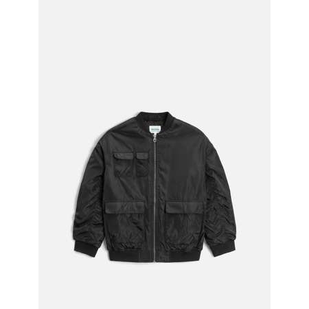 Утеплённый бомбер для девочек — стильный выбор для холодной и ветреной погоды. Модель изготовлена из качественной ткани с водоотталкивающей пропиткой, благодаря которой ей не страшны мелкий дождь, туман и влажность. Утеплитель — (вес 120г/м2), который делает комфортным ношение при температуре от 0 до +15 градусов. Подкладка выполнена из стандартной подкладочной ткани и простёгана вместе с утеплителем, что предупреждает его сбивание. Застёжка-молния дополнена внутренней ветрозащитной планкой. Практичность куртки обеспечивается обилием карманов: на груди нашиты два накладных кармана с клапанами, а ниже расположены два накладных кармана с клапанами на кнопках. Низ изделия и рукавов, а также короткий воротник отделаны трикотажными манжетами, обеспечивающими плотное прилегание к телу и сохранение тепла. Особый акцент придает сборка по рукавам и линии кокетки на спинке — с ней образ становится оригинальнее и выразительнее. Черный бомбер для девочки-подростка станет любимой вещью в гардеробе юной модницы.
