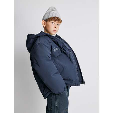 Утеплённая куртка с капюшоном для мальчиков — стильный выбор для демисезона. Основная ткань с водоотталкивающей пропиткой делает куртку подходящей для сырой и дождливой погоды, позволяя каплям влаги просто скатываться вниз. Утеплитель — синтепон (вес 180г/м2), который делает комфортным ношение при температуре от 0 до +15 градусов. Подкладка изделия выполнена из стандартной подкладочной ткани. Застёжка на молнию с внутренней ветрозащитной планкой дополнена защитой от защемления подбородка. По низу изделия расположен эластичный шнур с пластиковыми стопперами для регулировки прилегания. Эластичная лента по низу рукава препятствует продуванию. Спереди расположены два прорезных кармана, в которых удобно хранить перчатки или греть руки. Перед куртки украшает контрастный принт "FOCUS | LEGENDS AREN'T JUST BORN — THEY ARE BUILT LAP BY LAP | WHERE SPEED | WRITES HISTORY | SHIFTING TO SUCCESS" [англ. - "Фокус | Легенды не просто рождаются — они создаются круг за кругом | Где скорость | Пишет историю | Переход к успеху"]. Куртка представлена в двух цветах: черном и темно-синем.