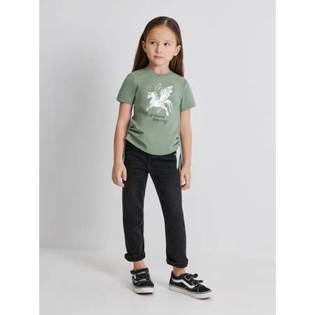 Детские джинсы для девочек модели Slim fit сочетают в себе стиль и удобство. Темно-серые джинсы, выполненные из эластичного хлопкового денима, хорошо тянутся и обеспечивают комфортную посадку. Пояс с внутренней эластичной лентой для регулировки объема позволяет подогнать изделие под индивидуальные параметры ребенка. Застежка-молния и пуговица обеспечивают легкое одевание и аккуратный внешний вид. Джинсы со средней посадкой удобны в ношении, а также они хорошо сочетаются с верхом разной длины. Модель с пятью карманами: двумя боковыми, маленьким накладным для мелочи и двумя накладными задними. Стилизуйте узкие джинсы для девочки с футболкой (20220510203) и подходящей по цвету курткой из денима.