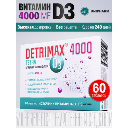 Цена на Витамин D3 ДЕТРИМАКС 60 таблеток - 1350 ₽.