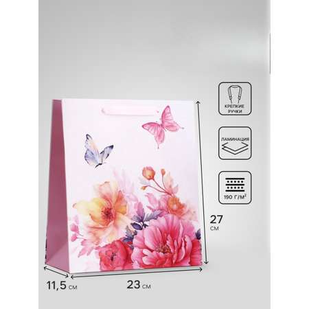 Пакет подарочный UPAK LAND Бабочки в цветах ML 23 × 27 × 11.5 см