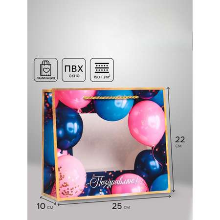 Пакет подарочный UPAK LAND с окном Поздравляю 25 х 10 х 22 см