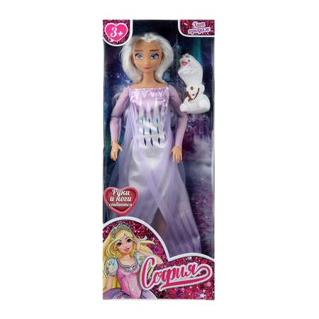 Прекрасная принцесса София одета в прекрасное платье с бело-сиреневой цветовой гамме. Одежду и аксессуары легко снять и надеть. С такой модной куклой девочке будет интересно и весело играть: благодаря тому, что руки и ноги куклы подвижны, им можно придать любое положение. У Софии длинные красивые волосы, которые хозяйка куклы сможет заплетать в разные причёски. Детально проработанный дизайн игрушки вдохновит девочку на множество увлекательных игровых сюжетов.