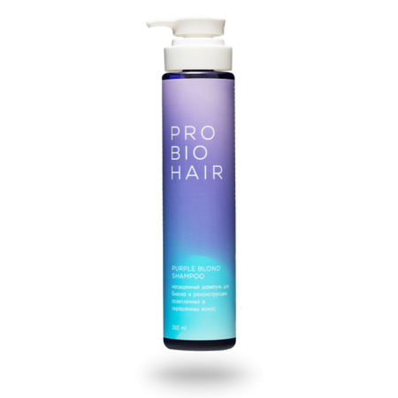 Оттеночный шампунь PRO BIO HAIR PURPLE BLOND разработан специально для ухода за осветленными, мелированными и окрашенными волосами. Это средство эффективно устраняет нежелательную желтизну, которая часто появляется на светлых волосах, придавая им благородный холодный оттенок и сияющий блеск.