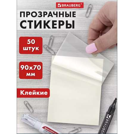 Блок для записей Brauberg 50 листов самоклеящиеся прозрачные