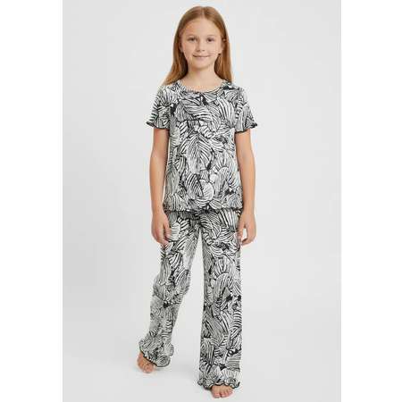 Пижама для девочки состоит из футболки и брюк. Пояс брюк на резинке.