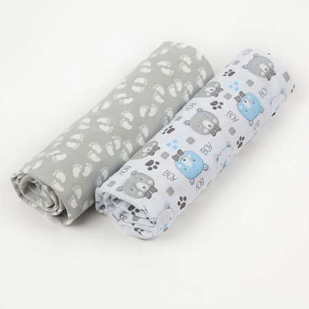 Пелёнка трикотажная inlovery для новорожденных «Легкость» мишки голубой/следы 90х120 см 2 шт