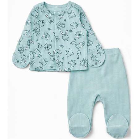 Комплект для новорожденного с распашонкой и ползунками ментолового цвета — универсальная и практичная одежда для малышей с рождения. Комплект для малыша состоит из распашонки с длинным рукавом на удобных кнопках, а также ползунков с закрытыми ножками и широким мягким поясом для максимального комфорта. Встроенные антицарапки оберегают нежную кожу новорождённого. Кофточка украшена модным минималистичным принтом, что делает комплект стильным и привлекательным. Костюм выполнен из натурального материала рибана, состав 100% хлопок, который обладает гипоаллергенными и дышащими свойствами, идеально подходит для чувствительной кожи новорожденных. Приятный к телу материал не раздражает кожу и сохраняет форму после регулярных стирок.