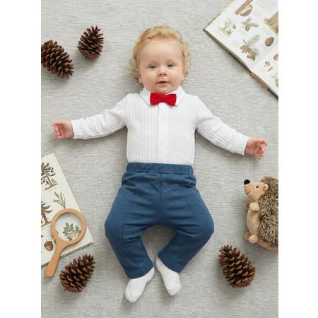 Комплект создан с заботой о нежной коже малыша. Брюки выполнены из мягкого интерлока — плотного, но эластичного хлопка, который не стесняет движений и отлично тянется при ползании, ходьбе или игре. Эластичный пояс на брюках и аккуратные внутренние швы обеспечивают дополнительное удобство в течение всего праздника. Все швы аккуратные, чтобы не мешать активному малышу.