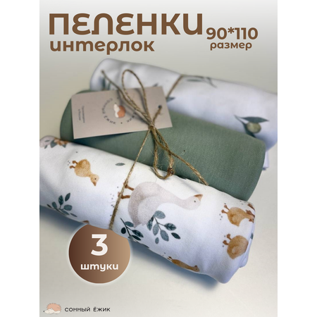 Пелёнка Сонный ежик Трикотажные пеленки трикотаж 90х110 см 3 шт.