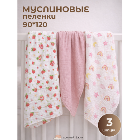 Цена на Пелёнка Сонный ежик Муслиновые пеленки муслин 100х130 см 3 шт. - 2430 ₽.