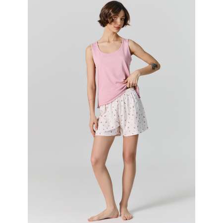 Комфортная посадка: Блуза прямого силуэта с глубокой овальной горловиной не стесняет движений. Шорты прямые, короткие, со средней посадкой и эластичной тесьмой внутри пояса гарантируют идеальную посадку по фигуре.