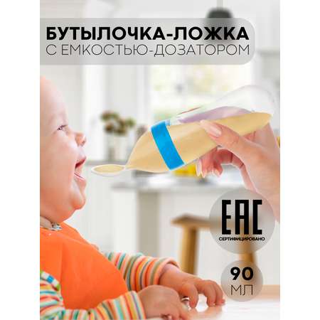 Эта ложка дозатор для кормления сделает кормление малыша, особенно первый прикорм, комфортнее, быстрее и проще. Залейте творог, пюре или кашу в ёмкость и выдавливайте на ложку нажатием на ёмкость. Так вы сэкономите время, которое требуется, чтобы зачерпнуть еды, и не испачкаете стол. Ребёнок будет более спокойным, потому что вы не будете отвлекаться и сможете всё внимание уделить малышу. Бутылочка для каши разбирается двумя движениями, поэтому вы не потратите много усилий на мытьё бутылочки. Ёмкость сделана из пищевого силикона без содержания BPA; на ней нанесены риски с шагом в 30 миллилитров, чтобы вам было удобно точно видеть, сколько съел ребёнок.