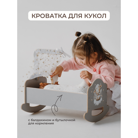 | Артикул: | 475720 Кроватка 45 см с балдахином (Серый/Принт) |