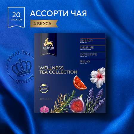Премиальное ассорти RICHARD WELLNESS с четырьмя видами чая, которые содержат полезные натуральные ингредиенты.