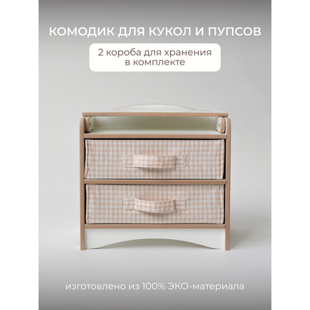 Кукольный комод с пеленальным столиком — удобная и реалистичная мебель для ролевых игр.