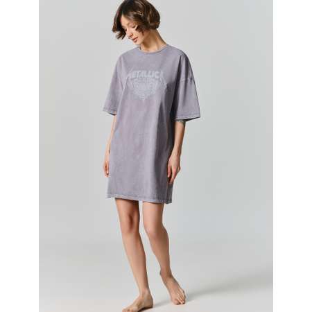 Стильный дизайн: Модный серый цвет с эффектом acid wash (кислотная стирка) и минималистичный металлизированный принт делают эту модель актуальной и современной. Это не просто ночнушка, а элемент домашнего гардероба, в котором не стыдно выйти к гостям.