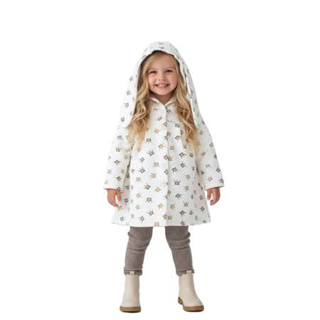 Жакет с капюшоном для девочек от ТМ VEDDI придется по вкусу маленьким леди. Прекрасный вариант как для повседневного использования, так и на выход или на фотосессию. Свободный крой дарит свободу движений, а стильная расцветка подходит под любой образ. Жакет сшит из капитония-хлопок 80%, п/э 20% .При правильном уходе жакет сохраняет презентабельный вид даже после многократных стирок. Белый жакет с милым принтом в виде коронок выглядит нарядно и подойдёт как для повседневных прогулок, так и для особых случаев. Удобный капюшон с ушками защитит ребёнка от ветра , добавит образу игривости. Оптимальный размерный ряд: размеры 86–104 — подойдёт для девочек разного возраста. Продукция VEDDI изготовлена с соблюдением высоких стандартов качества. Сделано в России — надёжность и безопасность материалов подтверждены сертификатами. Разнообразие цветов: выберите вариант, который лучше всего подойдёт к гардеробу вашей малышки.