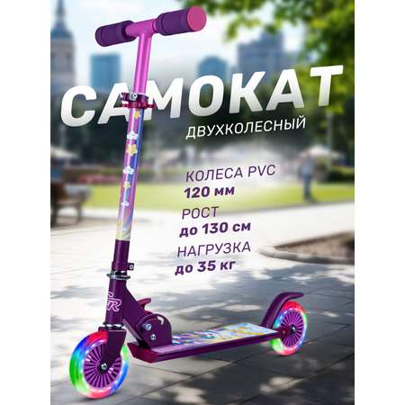 | Конструкция самоката: | складной, с регулировкой руля, со светящимися колесами |