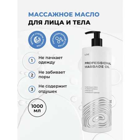 Главные преимущества косметического масла ILOVE: подходит для всех видов массажа лица и тела, а также беременным и детям, не забивает поры, не пачкает белье и одежду, гипоаллергенное, полезно для увядающей и сухой кожи, без запаха и цвета. Практичный объем - 1000 мл с удобным дозатором, который помогает сэкономить расход средства.