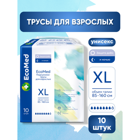 Взрослые подгузники-трусы EcoMed (ЭкоМед), размер XL, объём талии 85-160 см (10 шт.) — надёжная защита и комфорт при недержании для мужчин и женщин. Ультратонкие трусы практически незаметны под одеждой и ощущаются как обычное нижнее бельё.