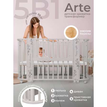Детская кроватка Sweet Baby Arte овальная, поперечный маятник (дуб)