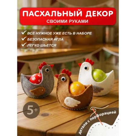 Набор для творчества «Курочки-наседки» поможет смастерить пасхальные украшения для дома, подготовить поделки в школу или сад, а также провести детский мастер‑класс по изготовлению игрушек - подставок для пасхальных яиц. Готовые фигурки украсят интерьер и станут милым подарком к светлому празднику.