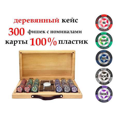 Подарочный набор для покера Black Stars на 300 фишек с кейсом из бука