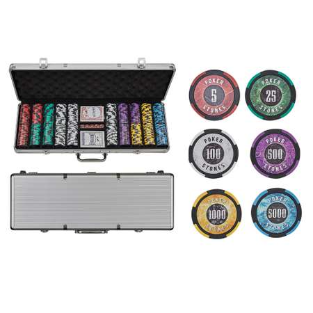 Номинал фишек: 5-75шт, 25-75шт, 100-150шт, 500-75шт, 1000-75шт, 5000-50шт
