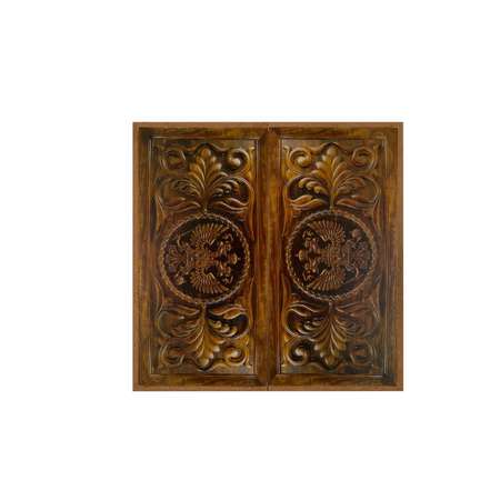 Доска оснащена медной фурнитурой, а изящный рисунок-наклейка, сделанный в технике шелкографии, украшает внешнюю сторону нард. Она устойчива к износу и идеально подходит для частой эксплуатации.