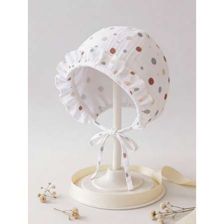 Хлопковый муслин — популярный материал для детской одежды и вещей, так как обеспечивает комфорт и безопасность. Белый цвет с милым узором "горох" добавляет нарядное настроение, а аккуратные рюши по краю создают кружевной эффект, делая этот аксессуар настоящей детской вещью для первых фотосессий, крестин, выписки из роддома или крестильного обряда. Нарядный чепец дополняет образ, подчеркивает индивидуальность и делает каждую фотографию особенной . Завязки надежно фиксируют головной убор, что особенно важно для активных малышей.