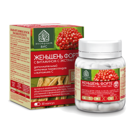 БАД Экстракт-ВИС Женьшень Форте с витамином С капсулы массой 0,44 г №30
