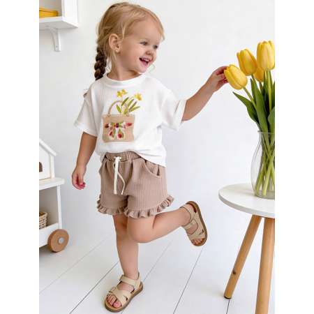 Футболка выполнена из трикотажного хлопка, что делает ее мягкой и приятной для тела малышей. Молочный цвет и базовая текстура ткани позволяют сочетать этот наряд с различными вещами, создавая интересные и стильные летние образы для маленьких девочек. Короткий рукав обеспечивает комфорт даже в жаркую погоду, а дышащий материал идеален для дома, прогулок, отдыха на пляже и занятий спортом. На передней части изделия размещен оригинальный принт, который добавляет модный и милый акцент, подчеркивая эстетичные детали одежды. Такой наряд станет классным подарком в день рождения, 8 марта или другой праздник, ведь он выглядит нарядно и привлекательно, оставаясь практичным для повседневной носки. Футболка подходит для малышей от 1 года и детей старше 3 лет, прекрасно сочетается с шортами и другой летней одеждой. Трикотажный хлопок легко стирается, не теряя форму и яркость печати, а прочные швы гарантируют долговечность.