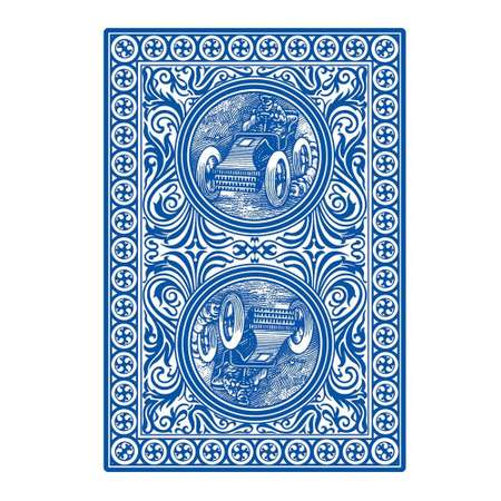 Старинный автомобиль здесь встречается и на коробке, и на рубашке. Есть возможность выбрать из 2 вариантов цвета – красный или синий. Изображения Валета, Дамы, Короля и Туза не отличаются от классических, поэтому проблем с распознаванием не возникнет.