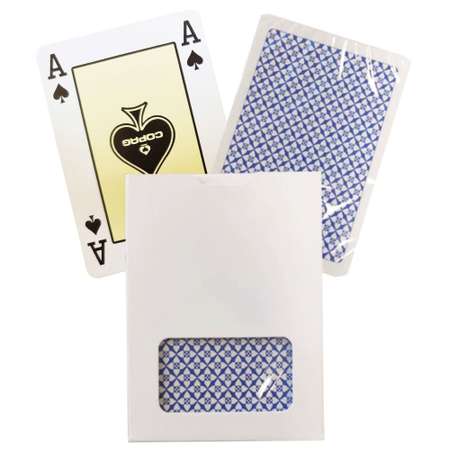 Набор карт «Copag Regular» с синей рубашкой – это именно то, что нужно простому игроку. Они достаточно прочные, чтобы выдержать сотни ожесточённых партий. Простой внешний вид позволяет без труда быстро рассмотреть «вес» карты, но при этом сама рубашка интересная и привлекательная. К тому же за это не придётся платить большие деньги, так как использование пластика позволяет сохранить доступную стоимость.