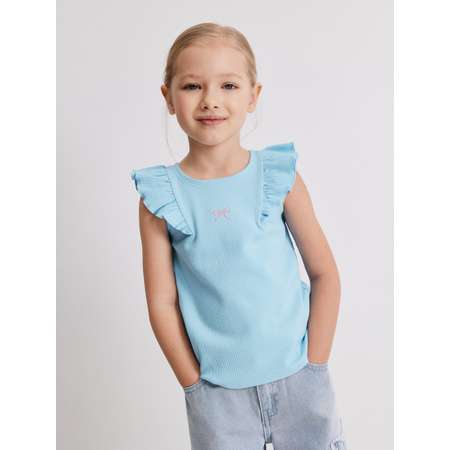 Детская майка с оборками-крылышками для девочки представляет собой стильную и утонченную модель для создания летних образов. Топ для девочки изготовлен из мягкого и эластичного хлопкового риба, который прекрасно подходит для длительного ношения. Модель чуть расклешенного к низу силуэта комфортно садится на разные типы фигуры. Удобная округлая горловина не мешает движениям. Спереди топ украшен вышивкой в виде бантика, которая придает нежный штрих образу. Главное дизайнерское украшение модели — оборки-крылышки, прекращающие повседневный образ в незабываемый лук. Модель представлена в двух цветах: белом и голубом. Комбинируйте белую майку любимыми джинсами, чтобы составить стильный аутфит.