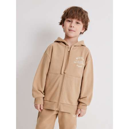 Детская зипка с капюшоном для мальчика — стильная модель для создания повседневных и спортивных образов. Худи на молнии выполнено из хлопкового футера с петлями на изнаночной стороне, что обеспечивает комфортное повседневное ношение. Модель свободной посадки со спущенной линией плеча удобно садится на детей разного телосложения и позволяет создавать многослойные образы, сохраняя свободу движений. Толстовка на молнии дополнена капюшоном с утяжкой. Спереди расположены накладные карманы-кенгуру. Низ изделия и рукавов выполнен из рибового полотна, которое плотно прилегает к телу и сохраняет объемную форму модели. Спереди расположен принт с надписью "NO SCREENS | WELL IT'S TIME TO EXPLORE, BUILD, DISCOVER AND ROAM | OFFLINE MODE| NO WORRIES" [англ. - "Без экранов | Ну что ж, пора исследовать, строить, открывать и бродить | Автономный режим | Не беспокоить"]. Дополните худи комплектными брюками-джоггерами (20120460144), чтобы составить стильный спортивный костюм для мальчика.