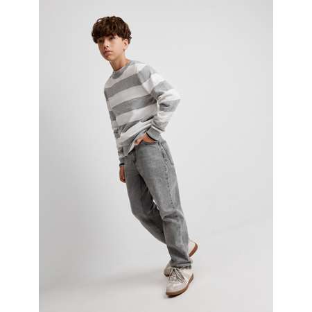 Детские серые джинсы свободного кроя — это стильная и удобная модель для создания расслабленных повседневных образов. Джинсы для мальчиков модели Relaxed fit не только позволяют легко двигаться, но и создают уравновешенный силуэт. Модель выполнена из 100%-ного хлопка, который подходят для повседневного ношения. Пояс с внутренней эластичной лентой для регулировки объема позволяет подогнать изделие под индивидуальные параметры ребенка. Застежка-молния и пуговица делают одевание быстрым и легким. Джинсы со средней посадкой удобны в повседневном ношении. Модель с пятью карманами: двумя боковыми, маленьким накладным для мелочи и двумя накладными задними. Стилизуйте джинсы с полосатым джемпером (20140310037), чтобы создать стильный и практичный повседневный образ.