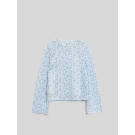 Кружевной лонгслив c майкой для девочки сочетает в себе утонченный стиль и комфортное ношение. Модель состоит из верхнего лонгслива с фактурным узором и нижней майки, выполненной из мягкого трикотажного полотна. Модель посадки regular предполагает приталенный крой и стандартную линию плеча. Все это обеспечивает классическую посадку по фигуре. Удобная округлая горловина изделия не мешает при одевании. Длинные рукава, чуть расклешенные к низу, придают образу элегантный штрих. Кружевной узор в виде цветочков делает образ нежным и воздушным. Кружевной лонгслив для девочки-подростка составит множество элегантных образов с джинсами или юбками. Модель представлена в двух цветах: черном и голубом.