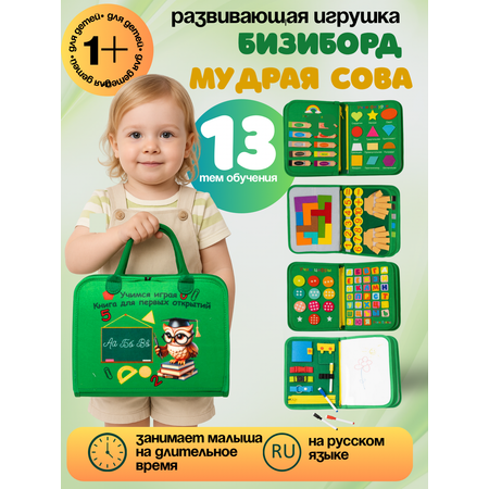 | Артикул: | Бизиборд книжка зеленая Сова |