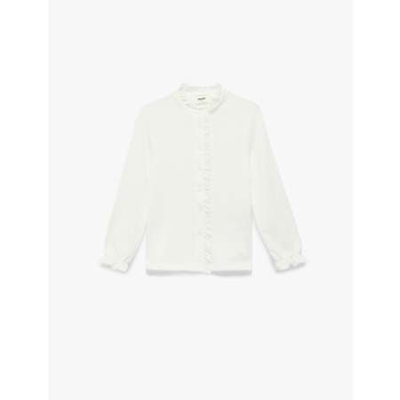Белая блузка с воротником стойкой для девочки. Отлично подходит для повседневного гардероба.