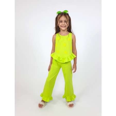 Нарядный трикотажный костюм с брюками от бренда Luneva – идеальный выбор для стильных и элегантных девочек. Яркий летний комплект двойка топ с широкими штанами подойдет как для торжественных мероприятий, так и для повседневной носки. Данная модель выполнена из 100% хлопка, который является гипоаллергенным материалом, что особенно важно для нежной кожи ребенка. Широкие палаццо обеспечивают максимальную свободу движений, а также делает образ легким и воздушным. Они оснащены мягкой резинкой. Топ, придаёт образу кокетливости и элегантности. Благодаря нейтральному принту со звездочками, костюм подойдет как для прогулок с друзьями, так и для праздничной фотосессии. Такой свободный фасон подойдет как на высокий, так и на маленький рост. Базовый летний комплект со штанами станет оригинальным подарком для дочки или внучки на день рождения или любой другой праздник. Для того чтобы изделие радовало Вашего ребенка дольше, мы рекомендуем деликатную стирку при t не более 30С с использованием смягчающих средств. Носите с удовольствием, будем рады вашим отзывам.