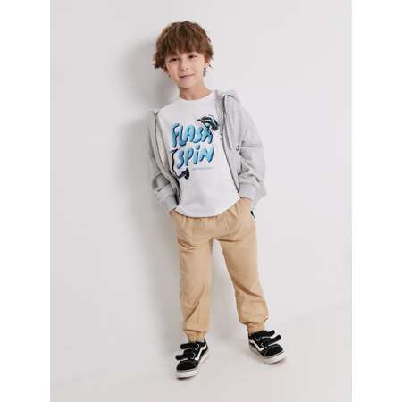Детские брюки для мальчика представляют собой универсальную модель для создания повседневных и спортивных образов. Брюки изготовлены из смесовой ткани песочного цвета, которая отличается износоустойчивостью и плотностью, подходящей для активного ношения. Широкий эластичный пояс на резинке комфортно садится на разные типы фигуры и дополнительно регулируются шнурком с пластиковым стоппером. Практичности добавляют накладные передние и задние карманы. По низу брючин расположены манжеты на резинке, обеспечивающие плотное прилегание к телу и сохранение объемной формы изделия. На уровне колен расположен декоративный шов. Комбинируйте брюки с футболкой (20120510293), чтобы составить стильный образ на каждый день.
